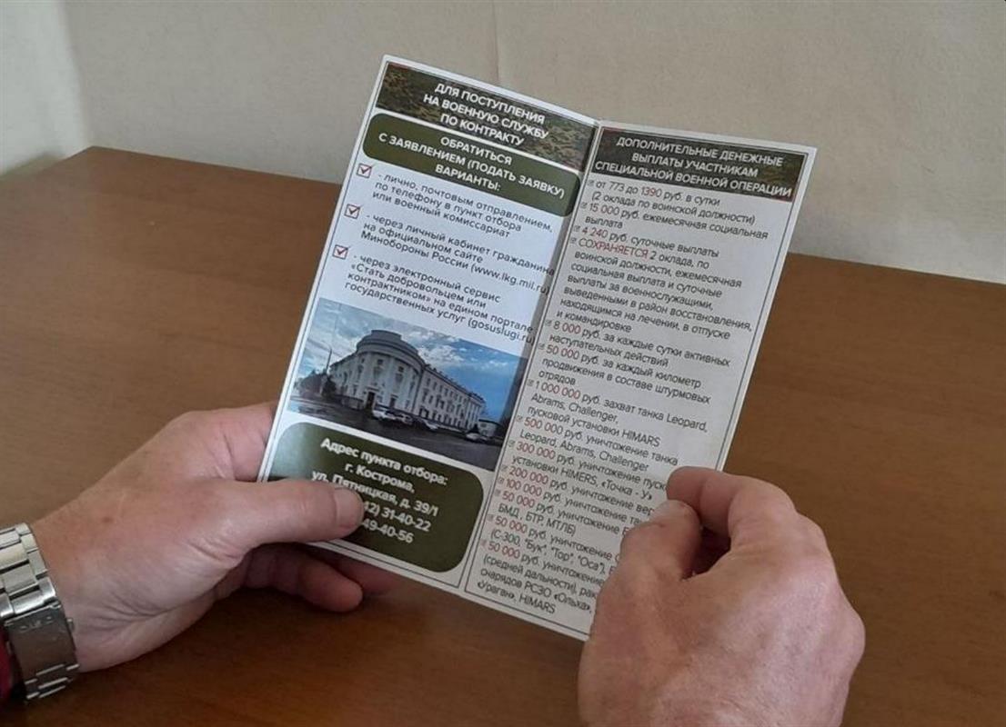 Сегодня сумма единовременной федеральной и региональной выплаты лицам, подписавшим в Костромской области контракт с Минобороны составляет 1 миллион 400 тысяч рублей. С 1 мая региональная часть выплаты увеличивается до 1 миллиона 600 тысяч рублей. Вместе с федеральными средствами контрактники единовременно получат 2 миллиона рублей, уточнили в администрации региона.