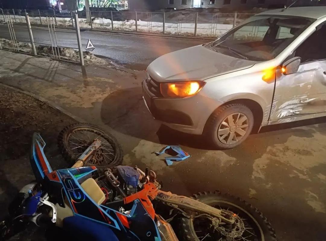 На нерегулируемом пешеходном переходе несовершеннолетний пошёл на обгон начавшего поворачивать автомобиля «Лада Гранта», под управлением 33-летнего водителя, но не справился с управлением и столкнулся с ним.